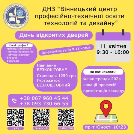 ЗАПРОШУЄМО НА НАВЧАННЯ ДО ВІННИЦЬКОГО ЦЕНТРУ ПРОФЕСІЙНО-ТЕХНІЧНОЇ ОСВІТИ ТЕХНОЛОГІЙ ТА ДИЗАЙНУ!