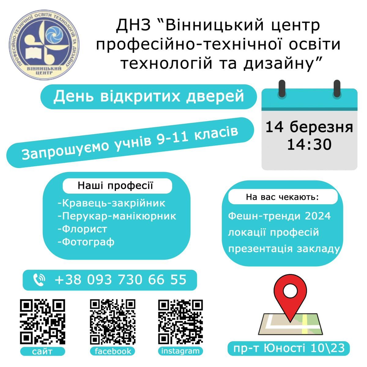 ЗАПРОШУЄМО НА НАВЧАННЯ ДО ВІННИЦЬКОГО ЦЕНТРУ ПРОФЕСІЙНО-ТЕХНІЧНОЇ ОСВІТИ ТЕХНОЛОГІЙ ТА ДИЗАЙНУ!