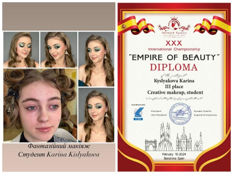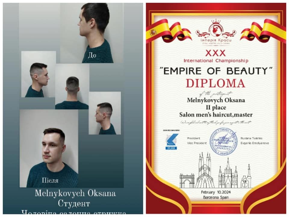 10 лютого 2024 року здобувачі освіти групи П-21-21 (майстер в/н Губерт О. М.) прийняли участь та здобули призові місця в ХХХ Ювілейному Міжнародному чемпіонаті "Імперія краси", який відбувся в Іспанії, м. Барселона.