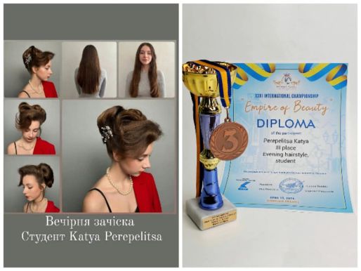 13 квітня 2024 року здобувачі освіти групи П-21-21 (майстер в/н Губерт О. М.) та П-22-21 (майстер в/н Дудник Ю. В.) прийняли участь та здобули призові місця в ХХХІ Міжнародному чемпіонаті "Імперія краси", який відбувся в Україні, м. Вінниця.