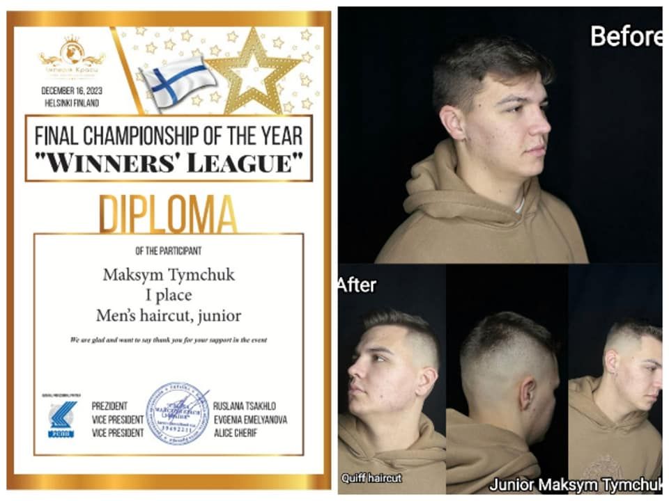 Тимчук Максим - 1 місце в номінації "Чоловіча стрижка" (юніор).